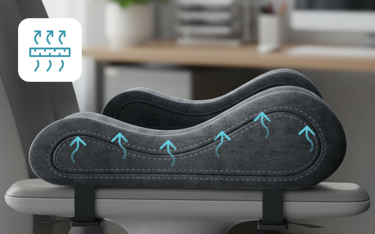 The arm pads are so soft! They made a huge difference at my desk. My elbows feel cushioned, not stiff or achy.