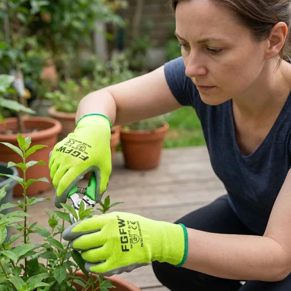 I use these for moving firewood and fixing fences. The palms don’t slip on rough boards, and the bright fabric stands out when we work near tractors.