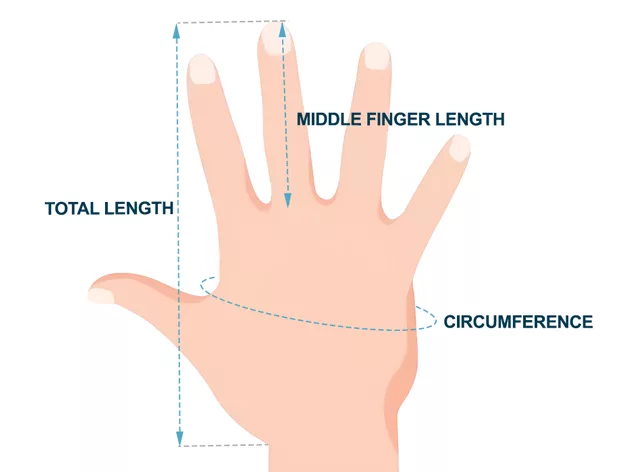 - 3. Stretch the measuring tape from the base of your palm to the tip of your middle finger.