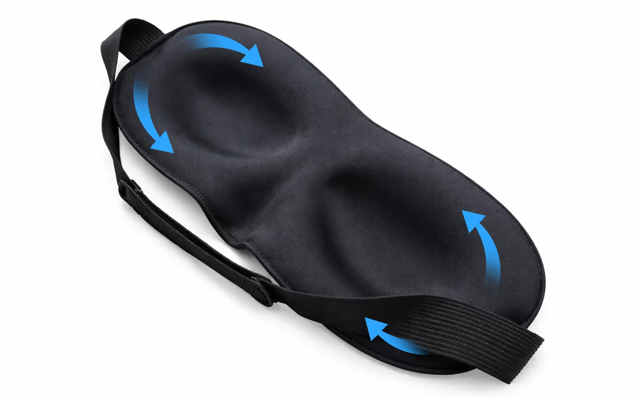 I love that it doesn’t sit flat on my eyes. The little space makes it feel light while still blocking light from the sides and around my nose.
