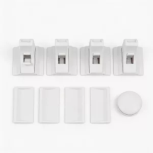 Fit every latch in just a few minutes. Strong adhesive holds each piece firmly without leaving marks.