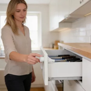 Love how these stay hidden. Guests don’t notice anything, but our son can’t open the medicine drawer. Setup took maybe ten minutes for all four locks.