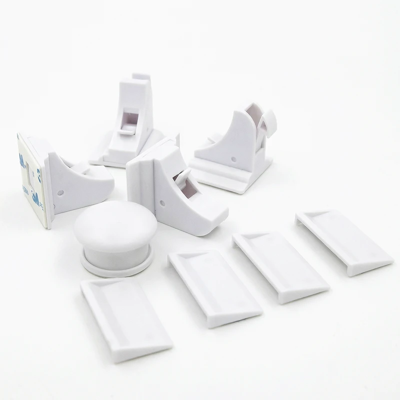 I used these in the kitchen and under the sink. Adhesive stuck well to painted wood, and the magnetic key works through thick cabinet doors with no fuss.