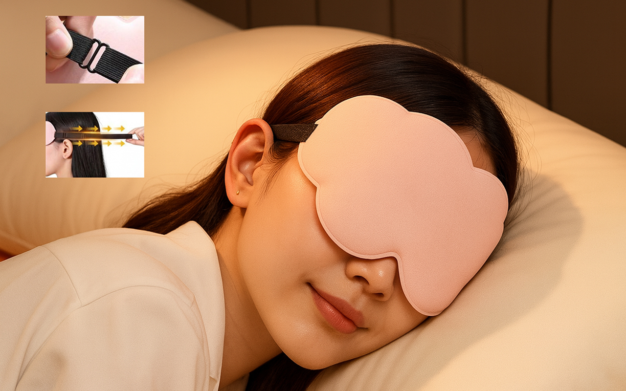 So easy to fall asleep now, even with lights on. Nothing leaks through, and the mask fits without pressing on my eyes. It stays put all night.