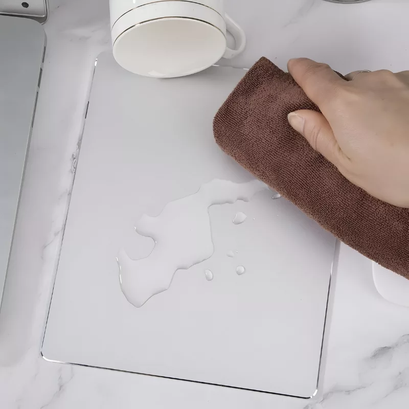 My desk finally looks organized. The mouse mat keeps steady on my glass table, which is awesome!