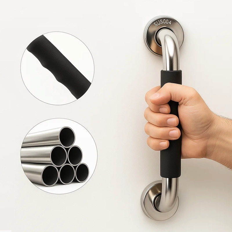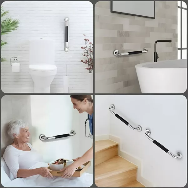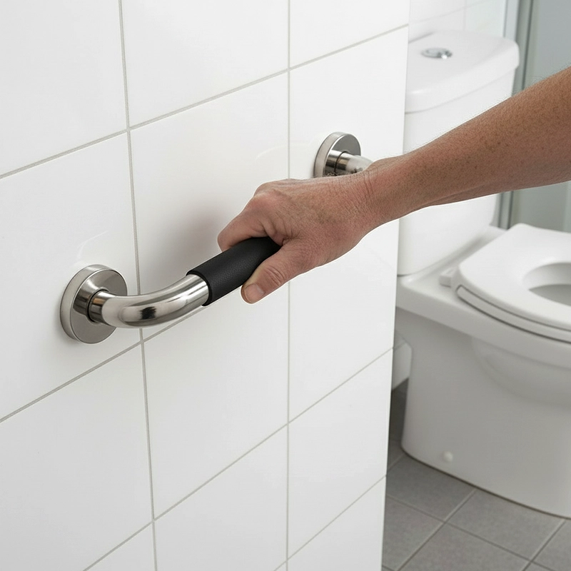 My dad uses this grab bar near the toilet every day. The grip stays strong even when everything is wet. Such peace of mind!