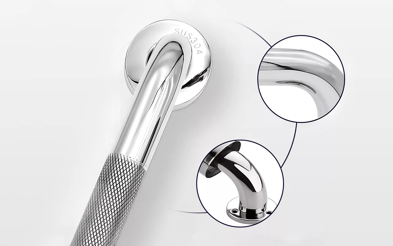 Crafted from high-quality stainless steel, our grab bar ensures long-term use. It can support substantial weight without getting damaged.