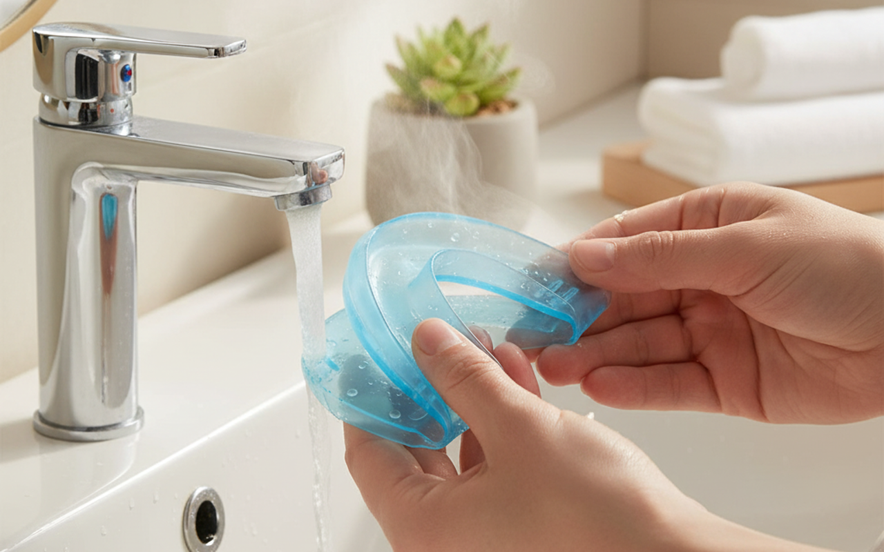 Shape the gel to your teeth using warm water. Adjust the fit for gentle support with no pain.
