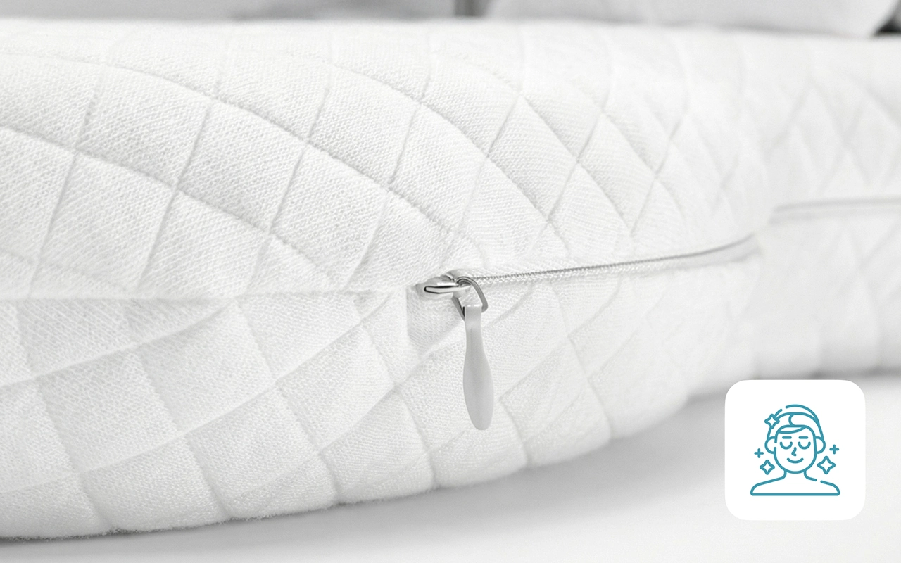 It was a nice surprise to wake up without marks on my skin. I also love how cool and fresh the pillow feels every night.