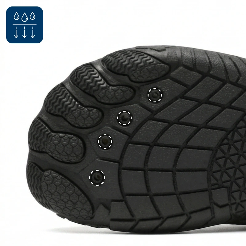 Water drains away fast, so feet never feel soaked. This means you can keep walking or swimming without discomfort.
