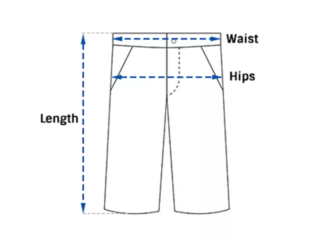 | SIZE | LENGTH | WAIST | HIPS | |||