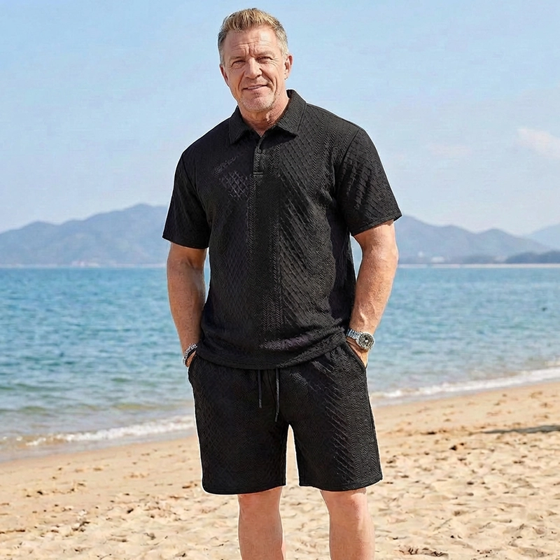 Enjoy warm days feeling fresh and confident every time. Ortorex set uses light knit fabric that feels gentle and airy. It keeps you comfortable outdoors, whether relaxing or moving. This outfit adds a smart touch, making you stand out easily.