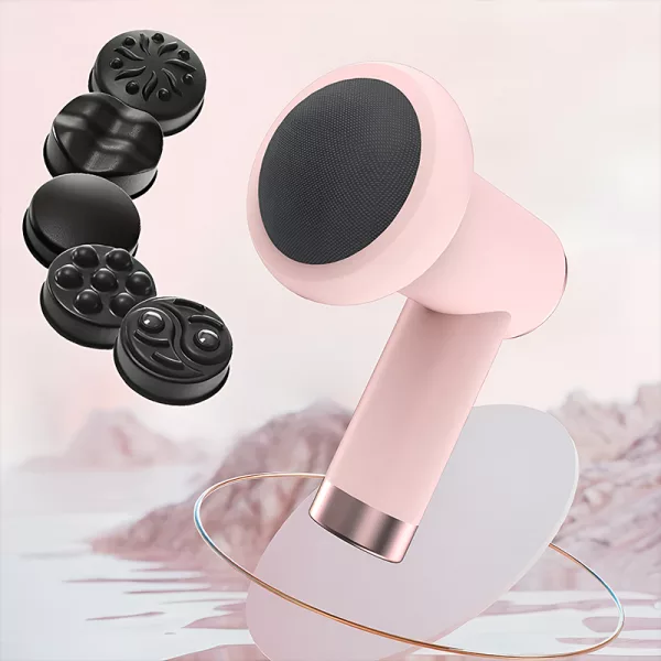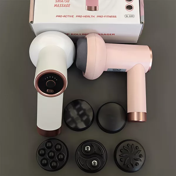 This handheld massager comes with multiple attachments. Each is designed to target a specific muscle group.
