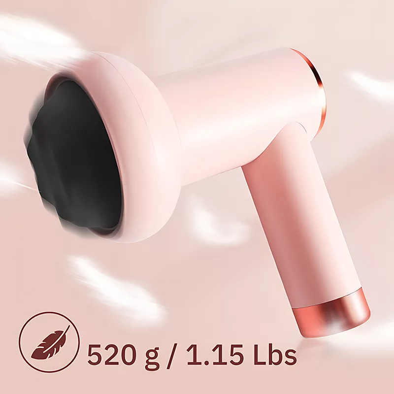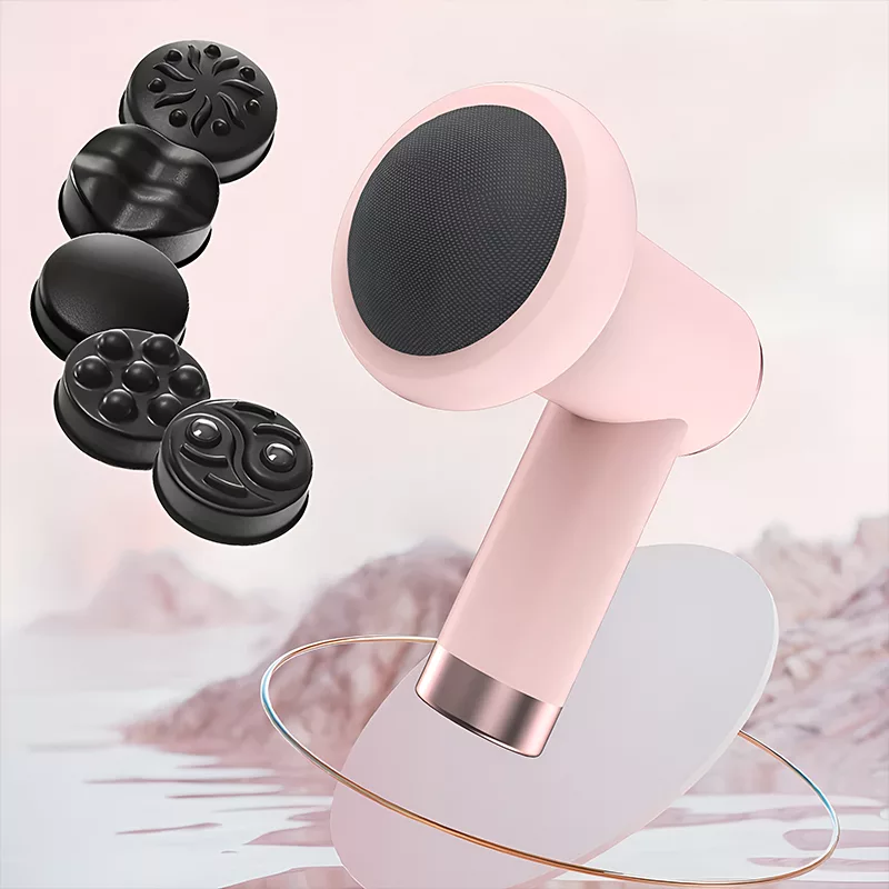 This handheld massager comes with multiple attachments. Each is designed to target a specific muscle group.