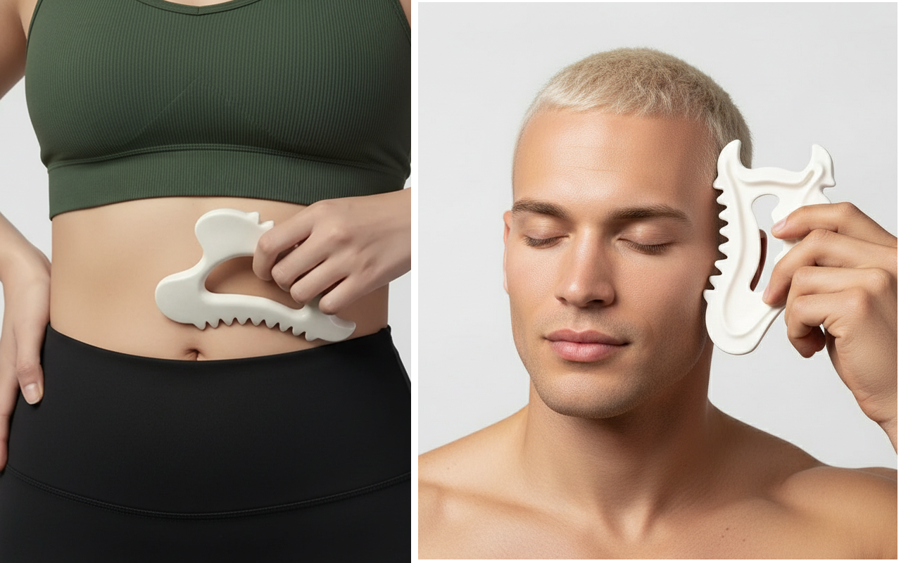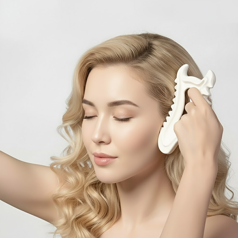 Ease everyday tension using the Ortorex gua sha tool all over. Gentle scraping soothes muscles and boosts circulation quickly. Smooth ceramic easily glides across the skin, never causing discomfort. The compact shape fits perfectly in your palm for easy handling.