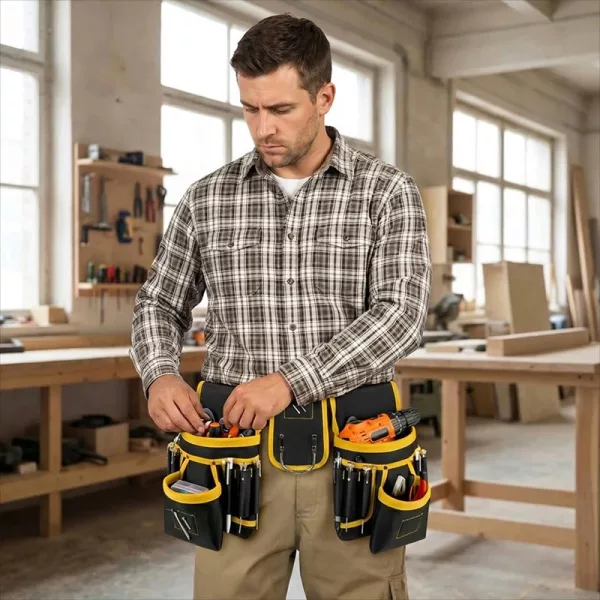 Reinforced seams handle heavy hammers, drills, and bulky hardware easily. Tough fabric shrugs off site dust, serving builders, electricians, plumbers through countless projects.