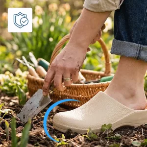Supportive design keeps pressure away from tired arches. Soft lining reduces soreness so you can stand longer in the garden or at work.