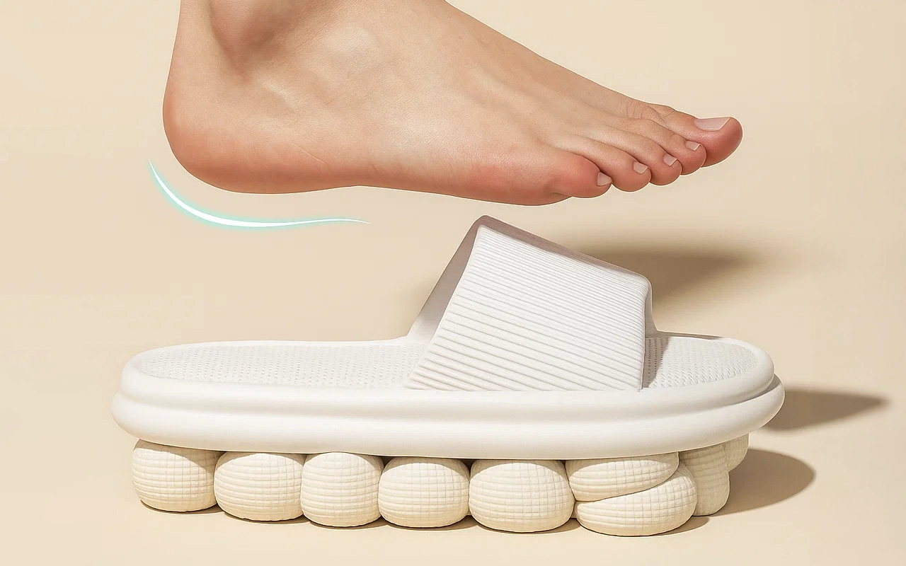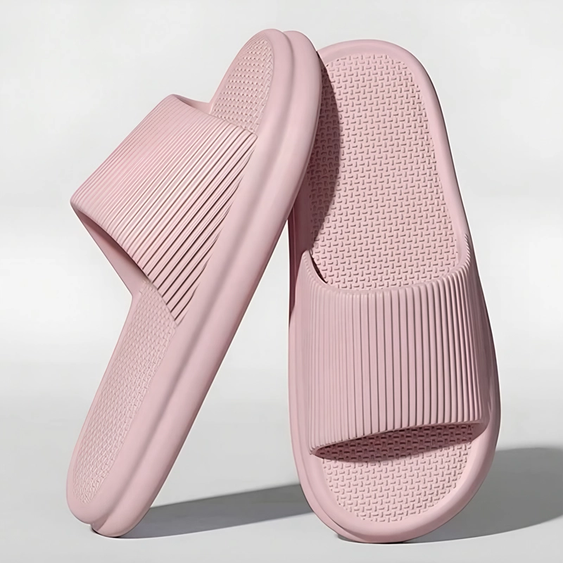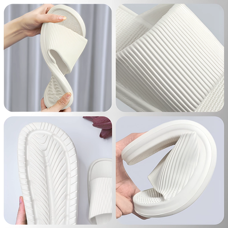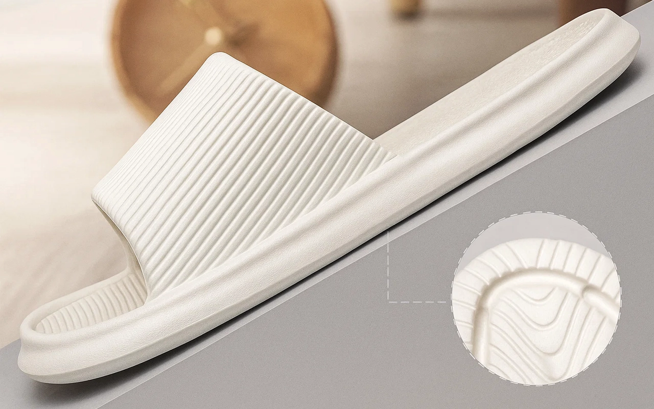 The slippers hug my feet gently. I like slipping them on in the morning because the cushioning feels so relaxing. No more slipping on our kitchen tiles!