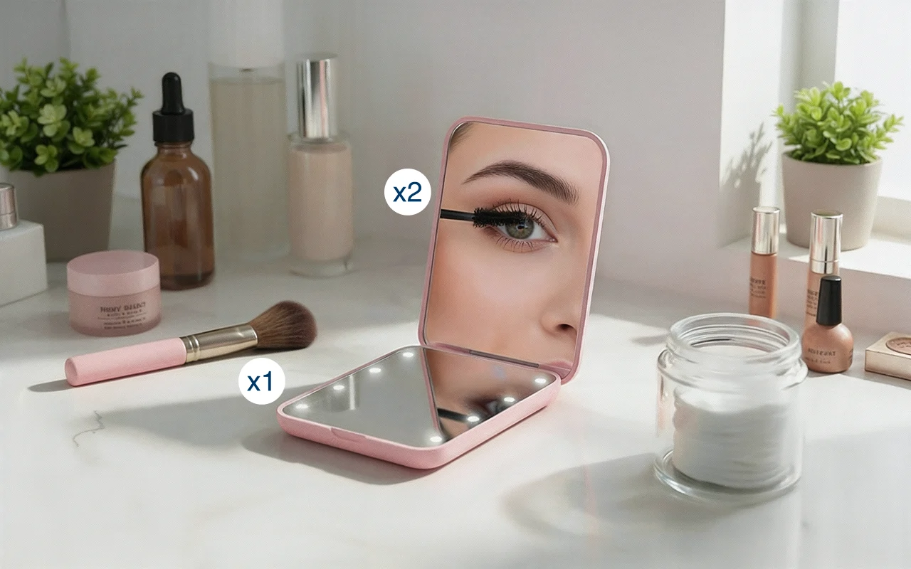 LED lights shine brightly, making it easier to apply cosmetics. Visibility improves even in dim spaces for top accuracy.