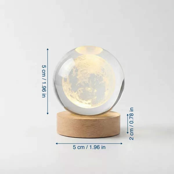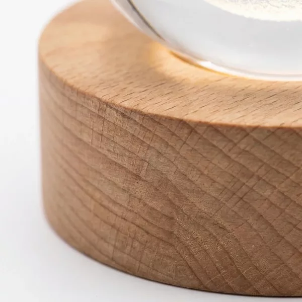 The crystal lamp looks classy on my bedside table. The wood base feels solid and the ball itself has these amazing little galaxy details.