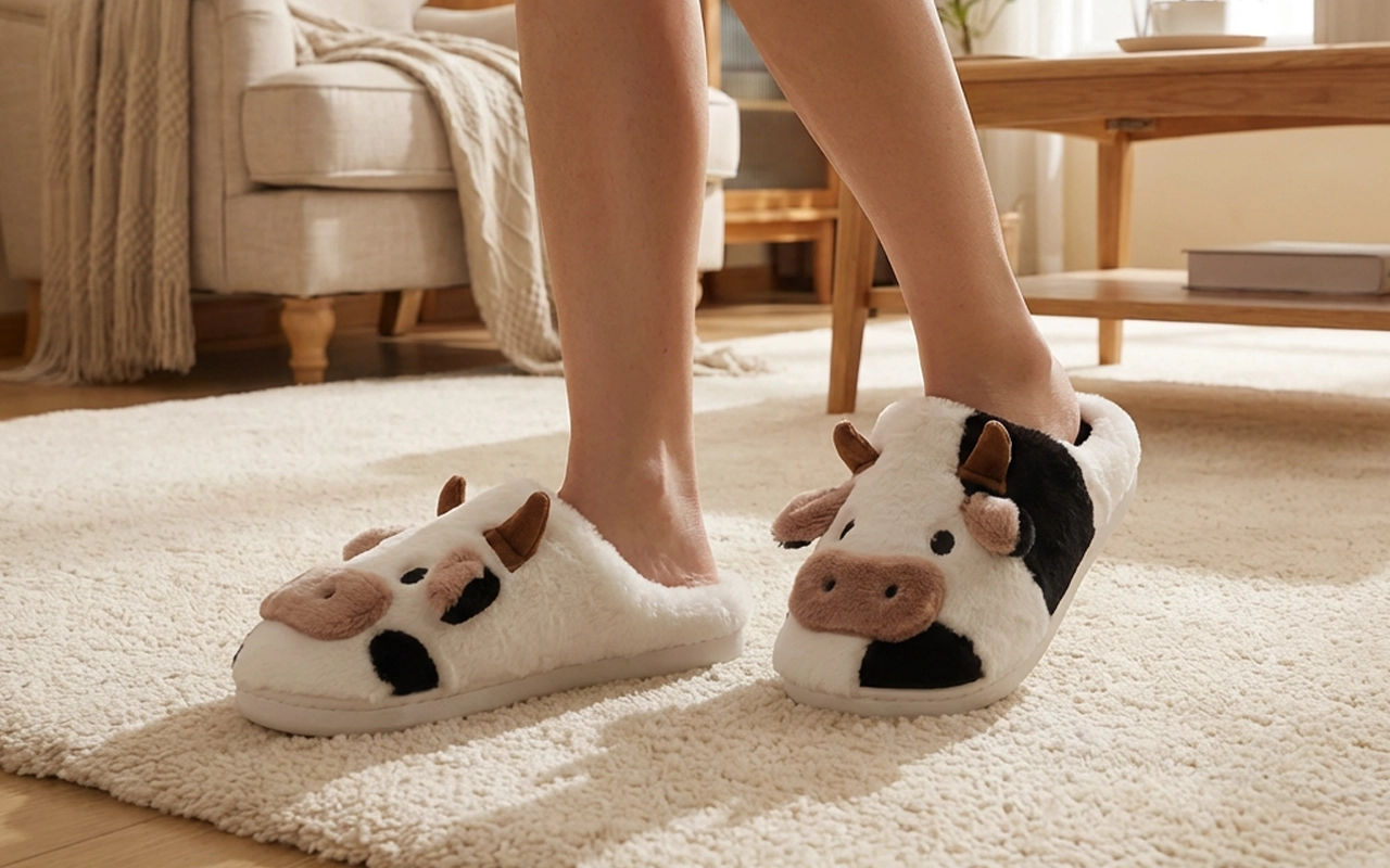 Cozy slippers for sure! They keep my feet toasty, and the cow print is awesome. My dog thinks they’re toys, but they’re holding up well.