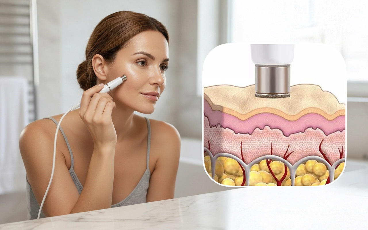This little machine fits right into my bathroom cabinet. Super easy to clean, and it actually works better than some spa treatments I tried.