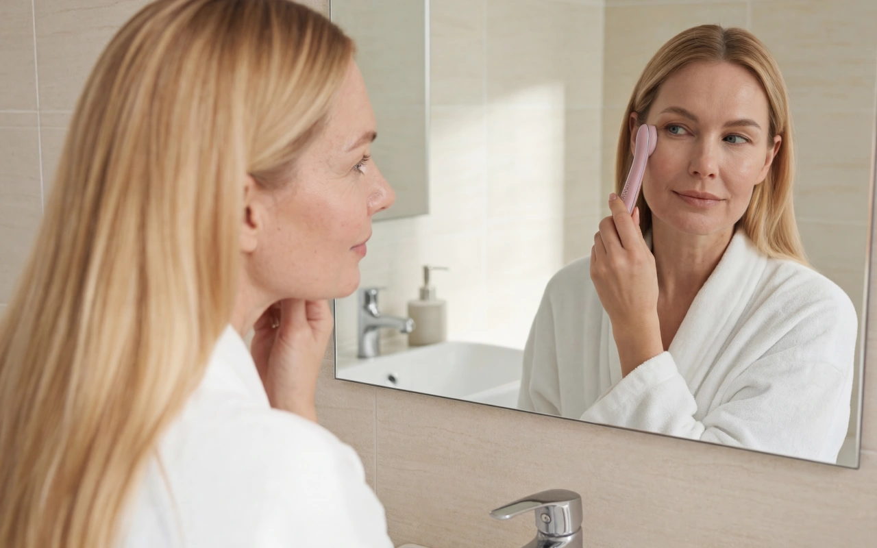 Warm pulses relax facial muscles and ease daily strain. Consistent heat improves absorption of creams for a softer feel.