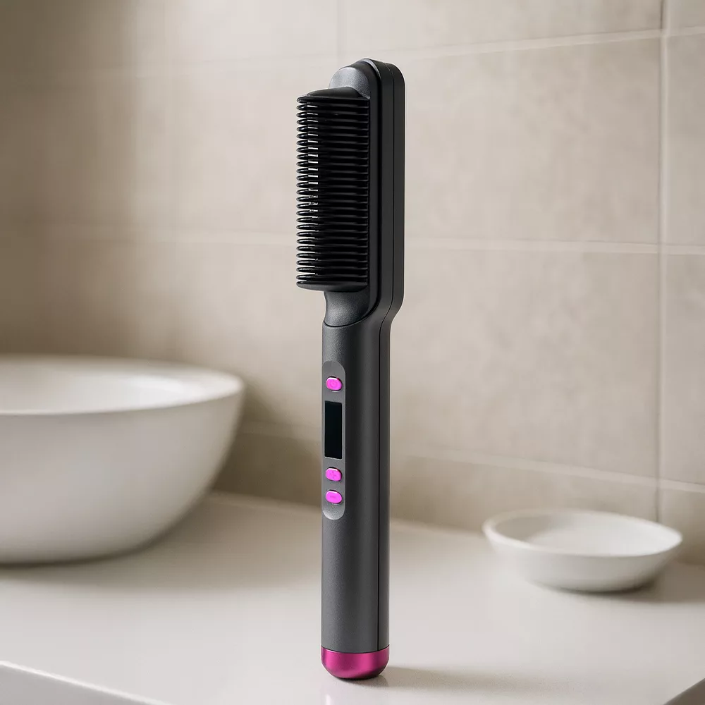 Honestly blown away by this hot comb! It heats up so fast and leaves my hair silky smooth every morning. No frizz, just shiny straight hair.