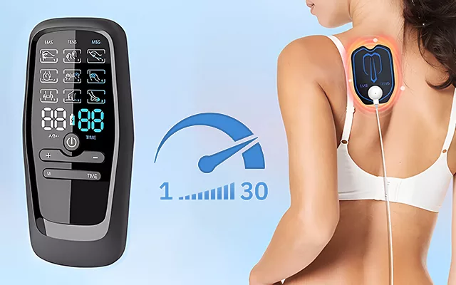 The Ortorex TENS massager has 30 different speed levels. You can regulate the intensity according to your comfort and needs.