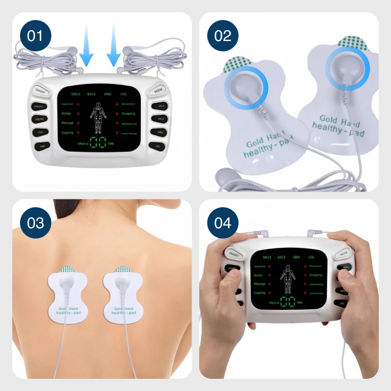 Bought this little EMS unit for my sore lower back. The pads are easy to place, and I feel muscles relaxing within minutes while watching TV.