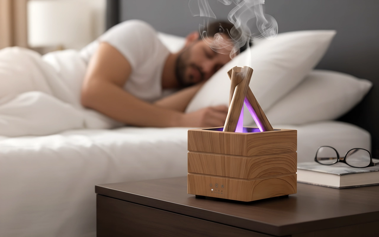 The bonfire diffuser fills my room with a gentle mist and the flashing colors help me sleep better every night. I use lavender oil for extra calm.