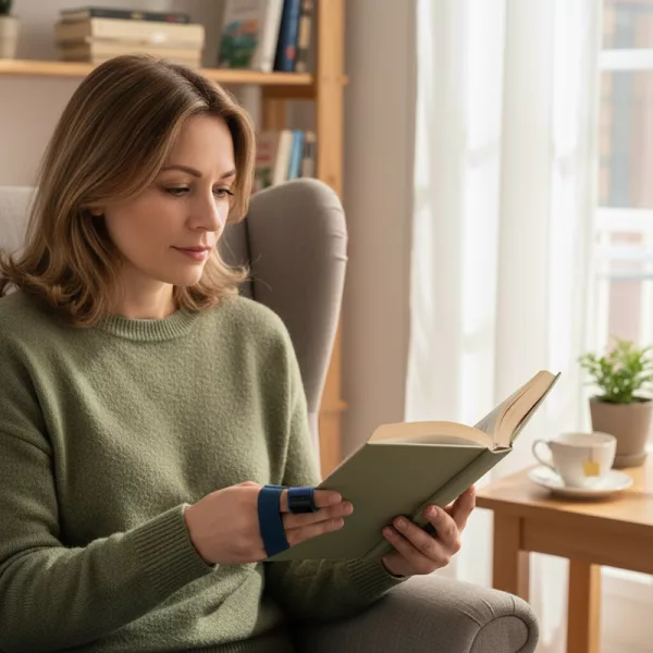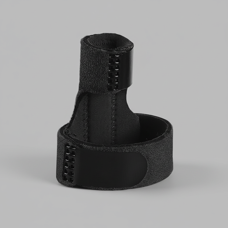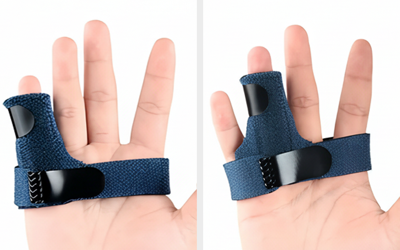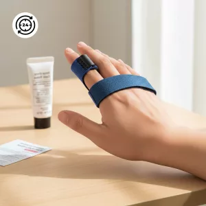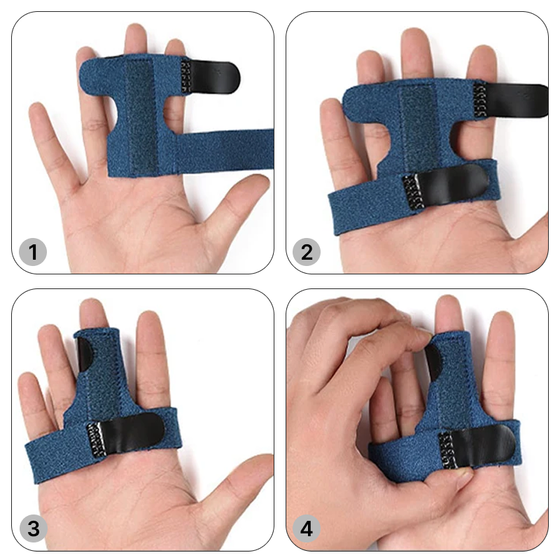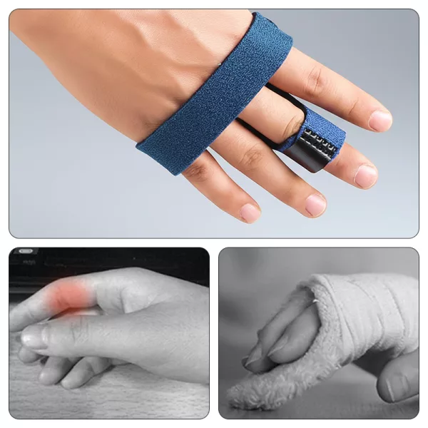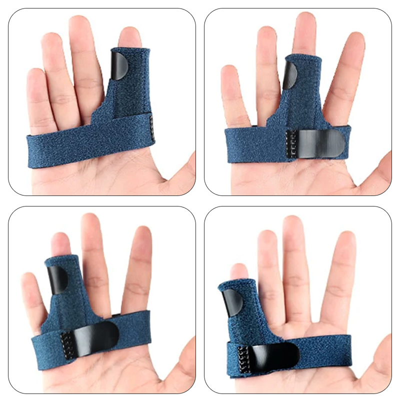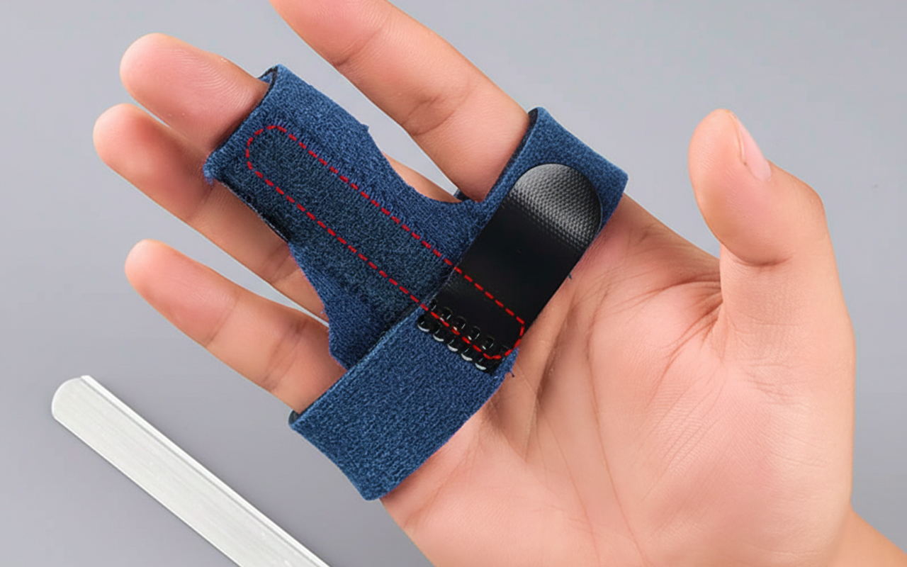Using this on my ring finger after a fall. The metal insert holds it steady while the straps adjust easily, even when my hand swells a bit.