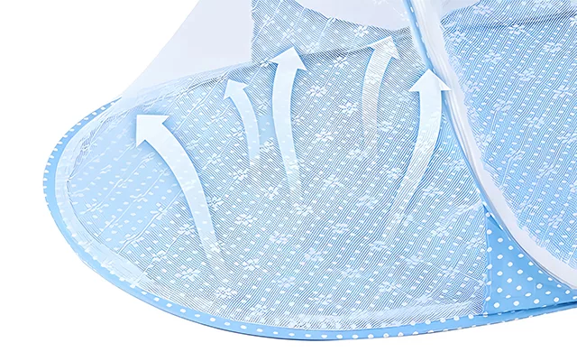 Our baby tent keeps insects out while allowing fresh air inside. This prevents overheating and can contribute to restful sleep.