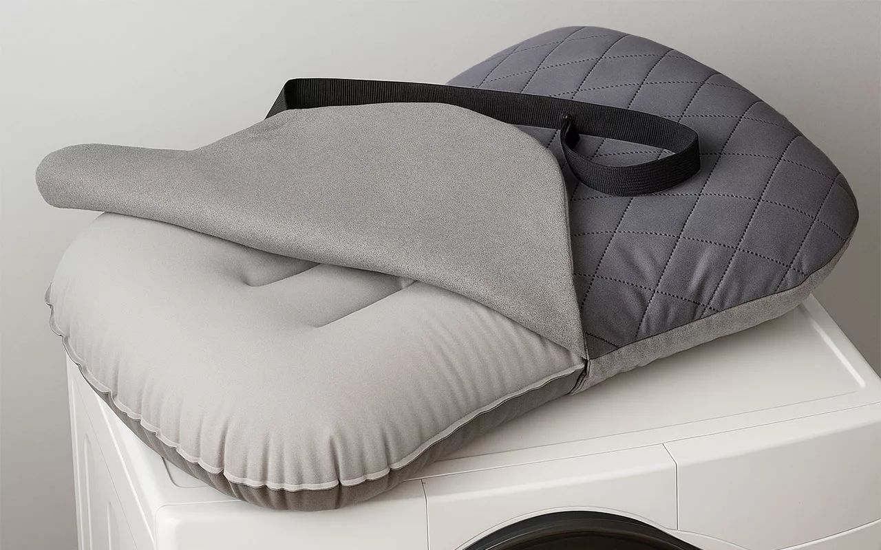 It inflates so fast and I can make it as soft or firm as I want. Very soft material and cleaning it is a breeze. Wouldn’t travel without it now.