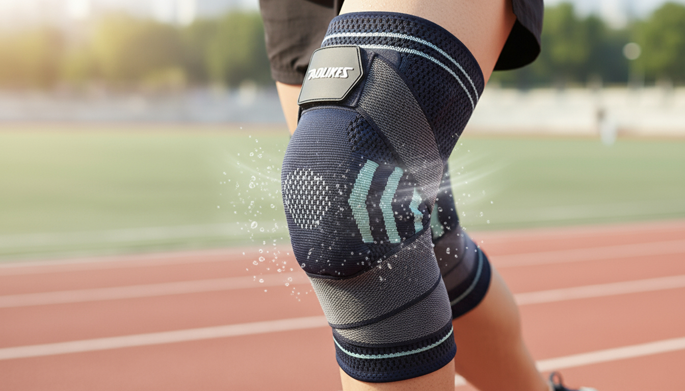I sweat a lot, but the fabric on this knee wrap keeps my skin dry. Super light and barely noticeable after a few minutes.