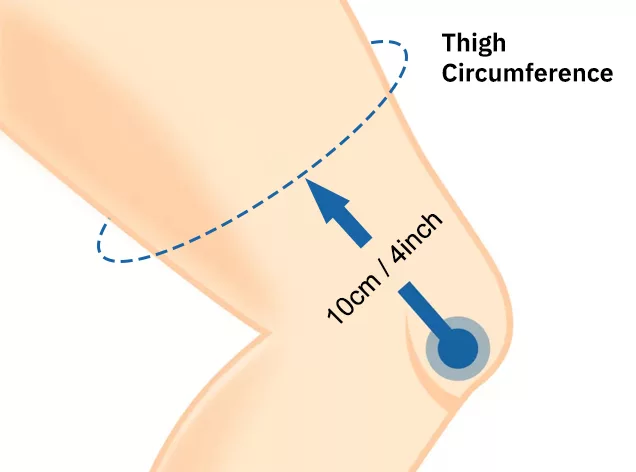 - 1. Bend your leg at a 30° angle and measure your thigh's circumference 4’’ (10 cm) above your knee cap.