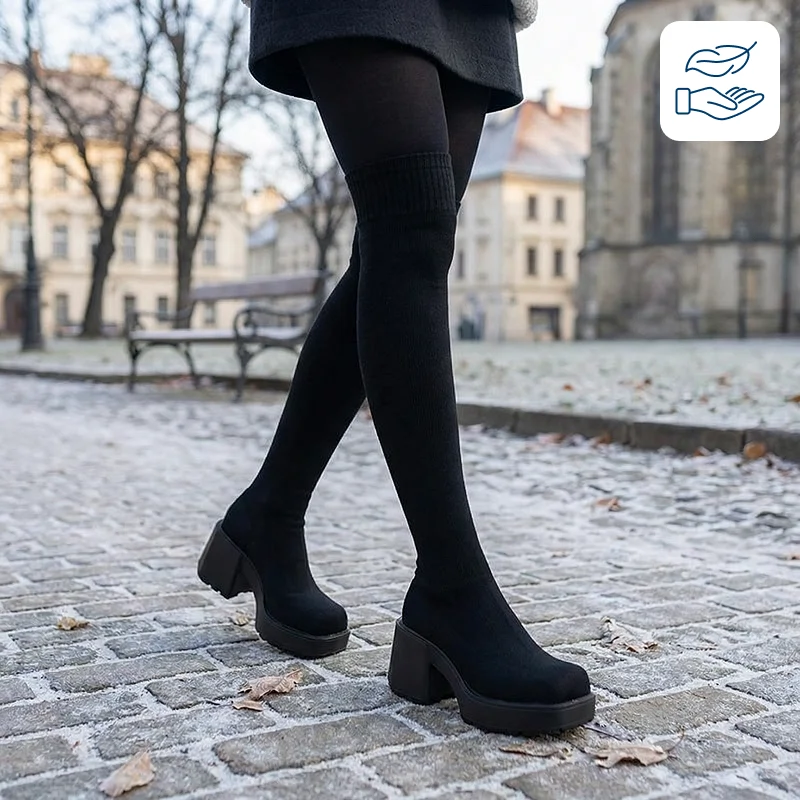 Slip on Ortorex boots and feel instant comfort and support. Cosy knitted material hugs your legs gently without rubbing or sliding. Thick soles make walking easier while keeping feet safe from cold floors. These shoes add height without making balance difficult.