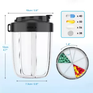 Super easy to open and fill up. The big compartments make it simple to grab my tablets fast each morning before school drop off.