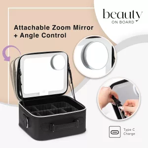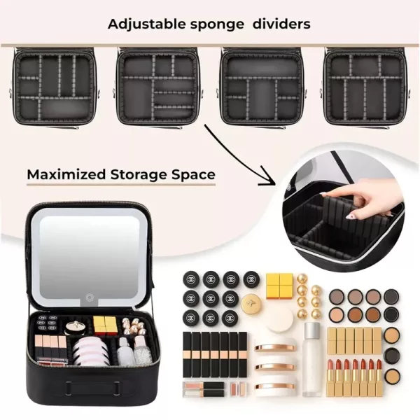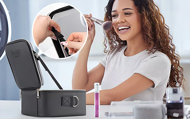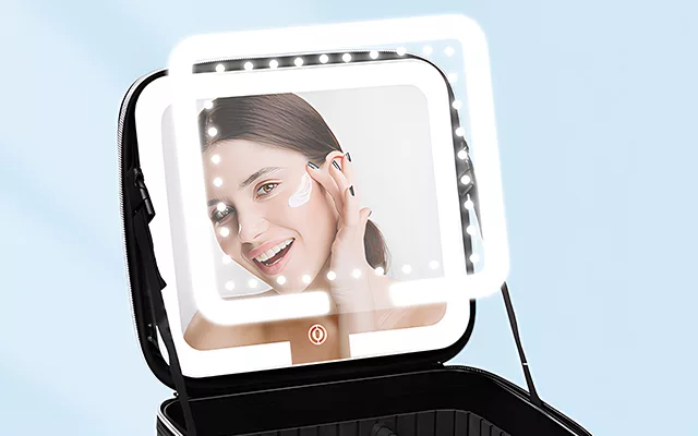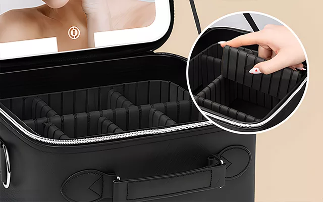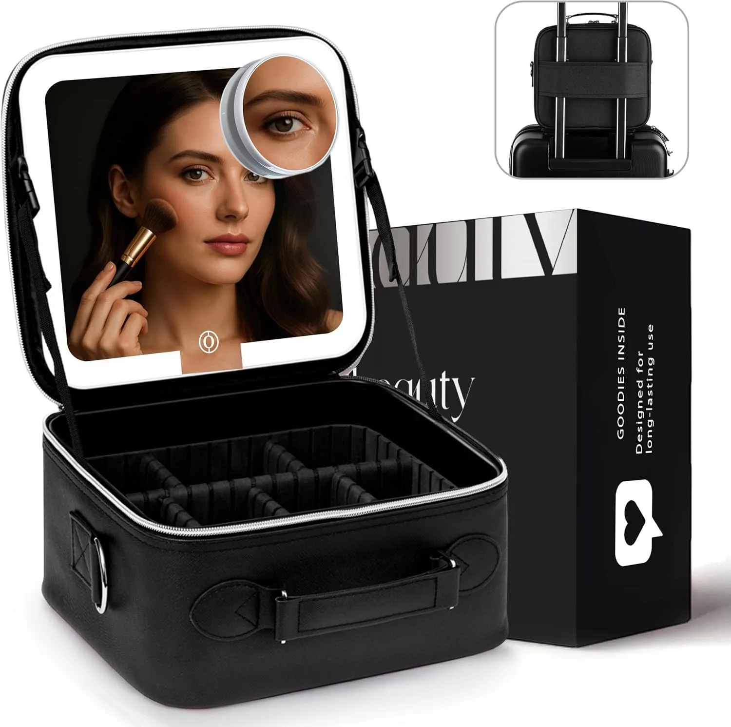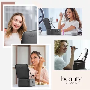 Love this lighted mirror and the nice construction of the bag. I wish the compartments could be just a bit deeper to fit taller jars and bottles, but overall it’s designed well and very useful