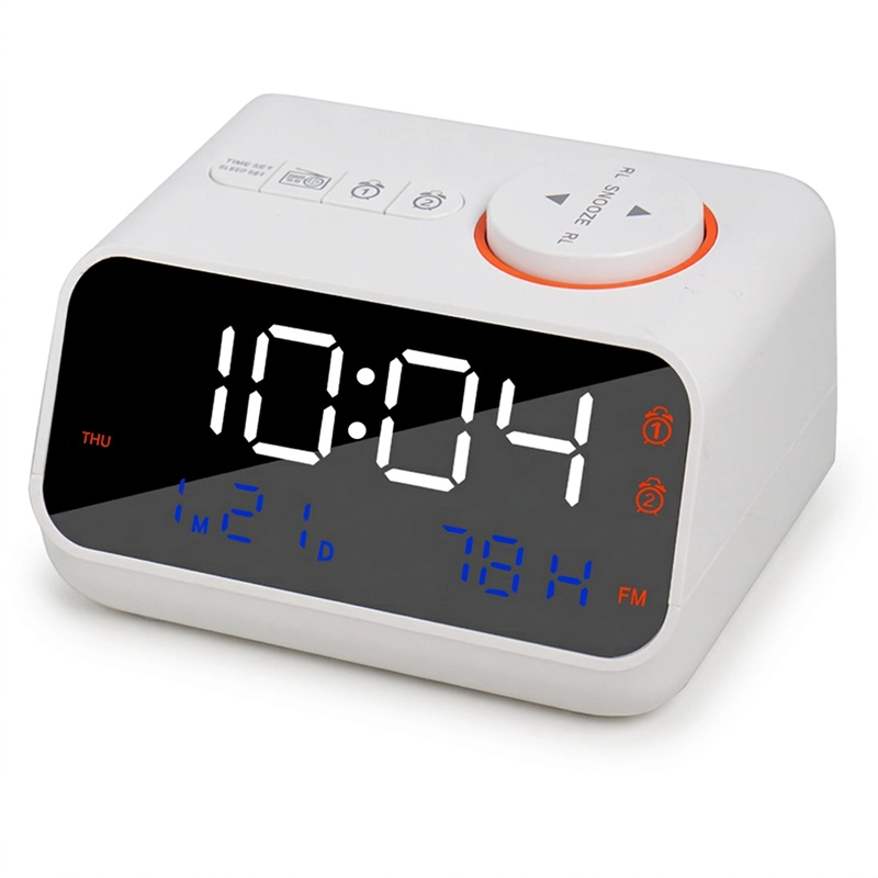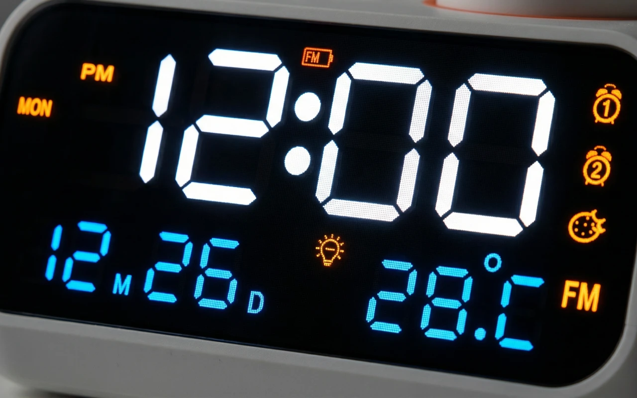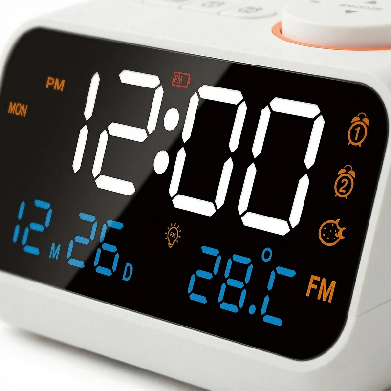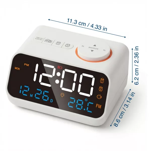 Large LED numbers are easy to read both day and night. Adjust the brightness so it never disturbs your sleep or morning.