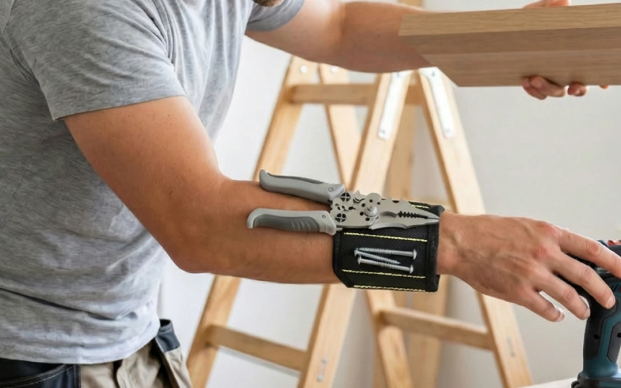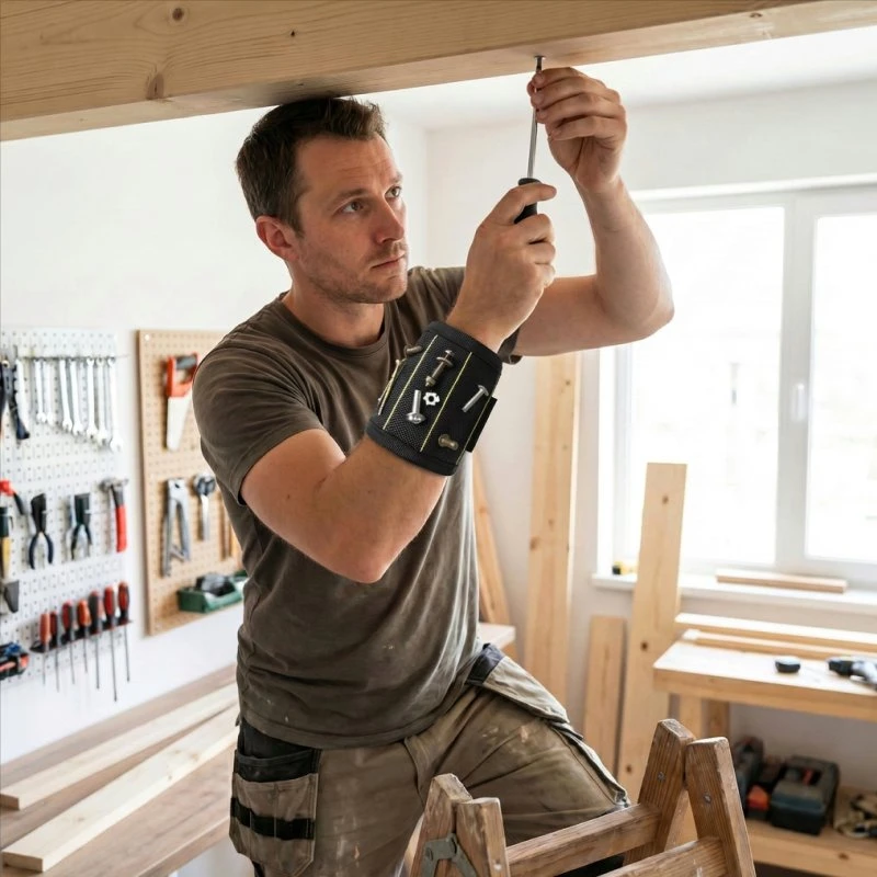 Ortorex wristband keeps screws and bits safely nearby. Strong magnets stop tiny pieces from dropping behind furniture. Lightweight strap fits most arms without slipping. Finish household projects faster because everything needed stays organised.