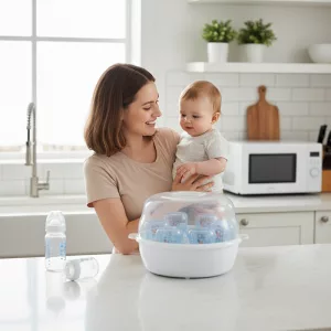 Just fill with bottles, add some water, and zap—done. Feels safe, too, since it uses BPA-free plastic. Really happy with it.