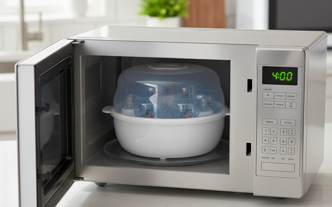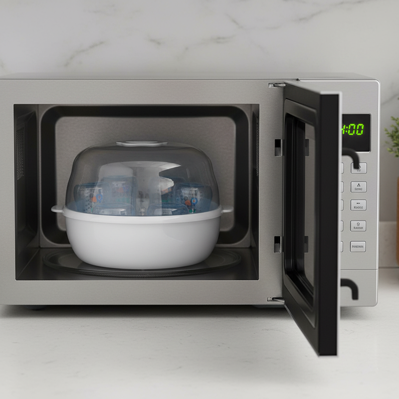 Just fill with bottles, add some water, and zap—done. Feels safe, too, since it uses BPA-free plastic. Really happy with it.