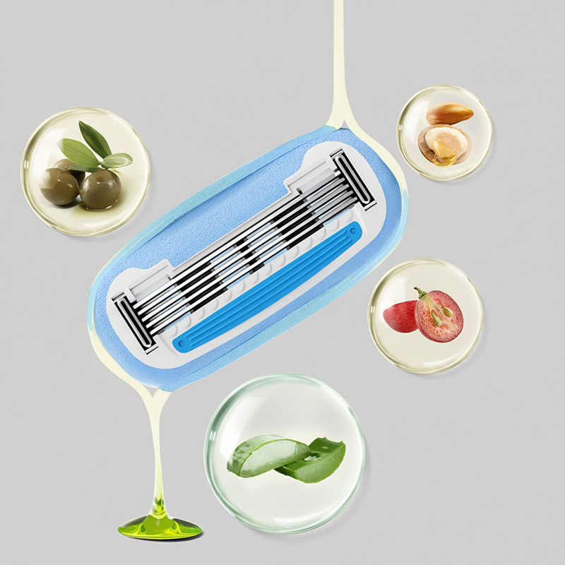 Aloe and shea butter in the blades hydrate and soothe skin. Sensitive areas stay soft without painful bumps or redness.