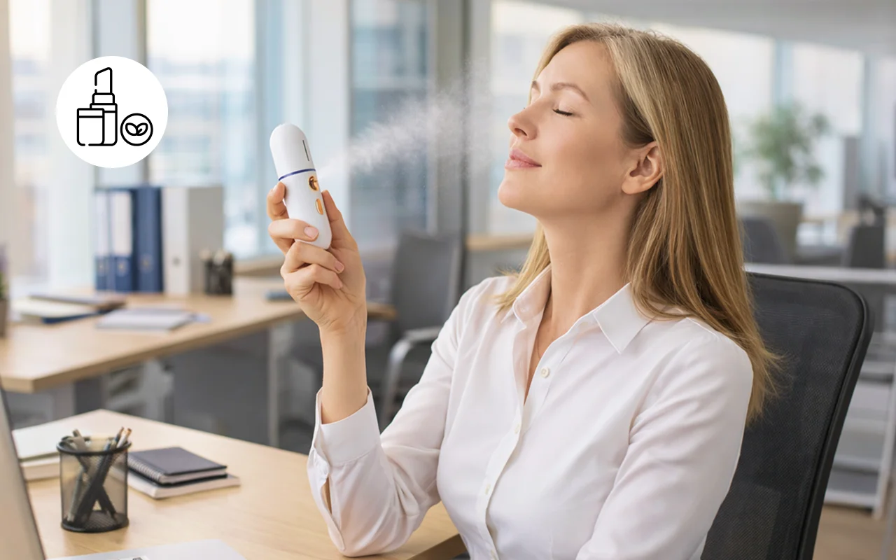 I was worried my foundation would smudge, but the fine mist never messes it up. My face feels fresh even late at night.