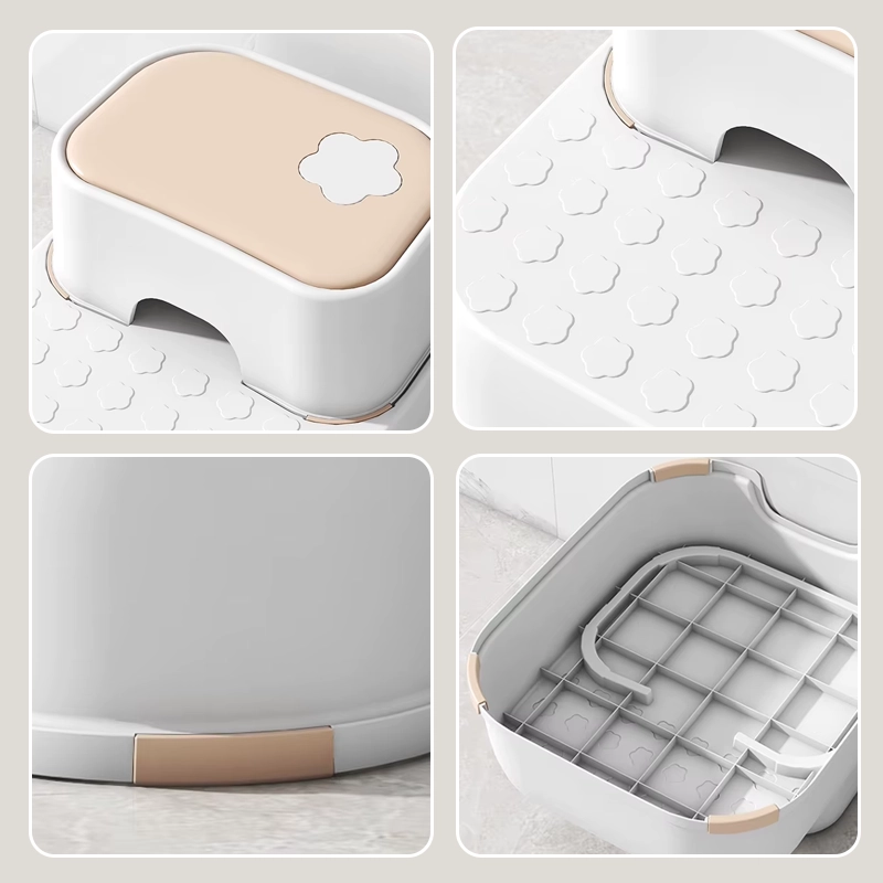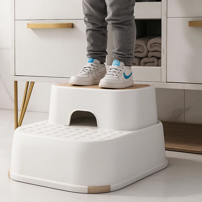 Anti-slip pads keep the stool firmly planted on tiles. No more worries about accidents or slips during busy mornings.