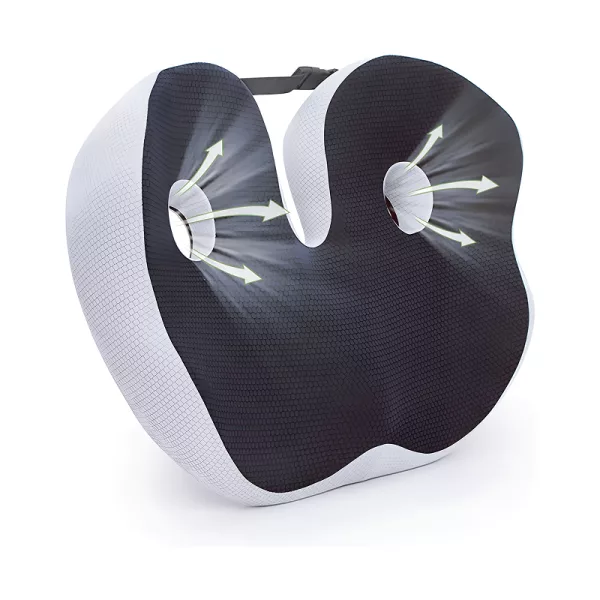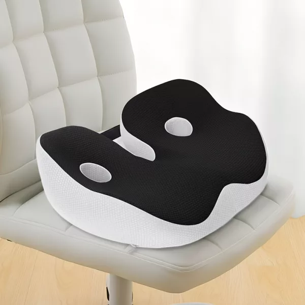 Carrying this cushion to and from work is easy, and my back hurts a lot less. The shape makes it super comfortable to sit for hours.