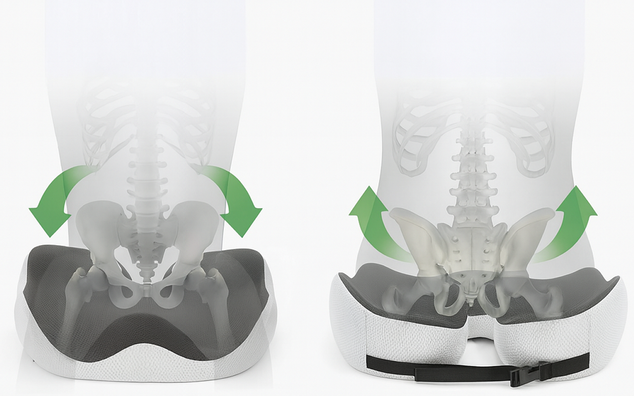 Extended hours on hard chairs cause aches and tiredness quickly. The Ortorex cushion supports your lower body and keeps you relaxed. No more sore hips or numb legs during work, driving, or resting.