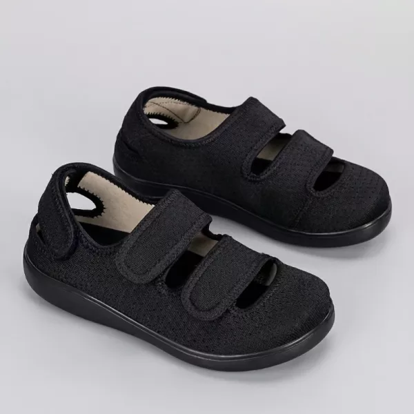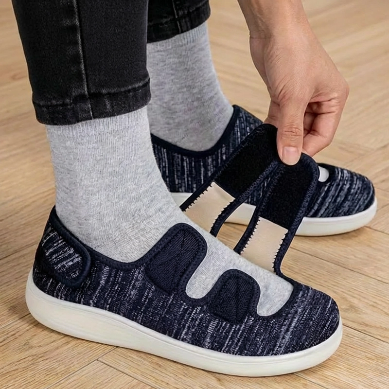 Adjustable straps hold the shoe firmly in place without squeezing. This allows personalised comfort throughout the day, even as feet swell or change shape.
