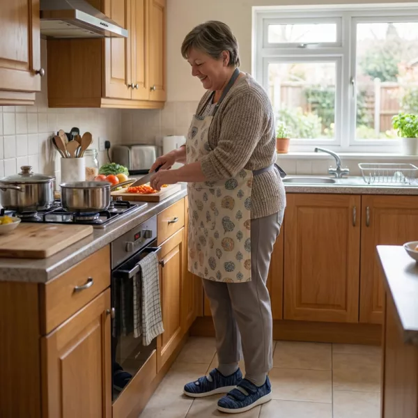 Bought these for my mum after her hip surgery. She slips them on alone, and the support lets her move around the kitchen safely.